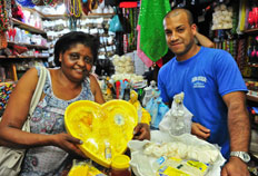 Pronta para passar o Réveillon em Quintão, no Litoral Norte, a dona de casa Maria de Fátima Soares, 53 anos, foi ao Mercado Público garantir dois kits de oferenda. Na noite da virada, ela oferecerá ao mar o kit amarelo para Oxum e o branco para Oxalá: